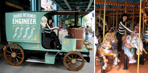その後、“”ディズニーシー・エレクトリックスレールウェイ”に乗って、“アメリカンウォーターフロント”へ移動し、ミュージカル『アンコール!』の上演される12時30分まで時間を潰しました。 これも上演時間は30分ほどあって楽しかったです。 朝から乗ったいろいろなアトラクションものは、乗り物が急発進、急ブレーキしたり突然ガタガタ揺れたりと、腰や首に悪そうだったし、休憩を兼ねた『ミスティックリズム』もジャングルを想定しているのでいすが木で硬く座り心地悪く、すっかり疲れてしまいましたが ここはブロードウェイを想定しているので劇場もきれいで、椅子の座り心地もよくすっかり疲れがとれました。