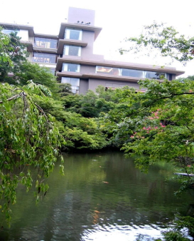←庭園からみえる“八芳園”の会場