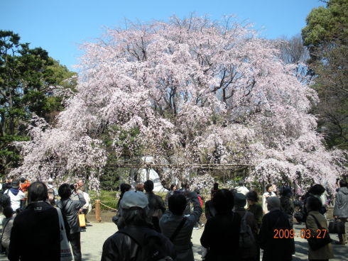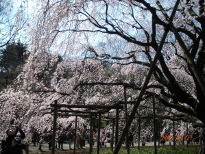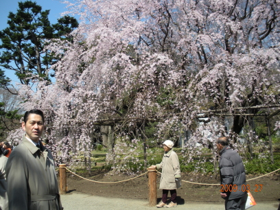 ←以前(2004年5月23日)に六義園へ来たときにしだれ桜の前で撮った写真です。 |