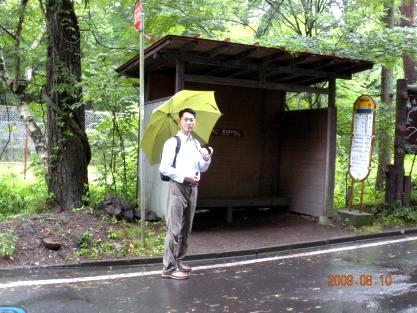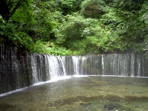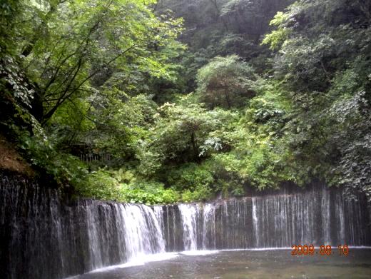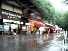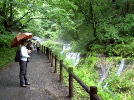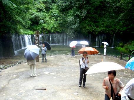 最初の予定では「今日は“白糸の滝”に行ってみよう」ということでしたが、「雨が降っているのに滝なんて」ということで、「今日は屋根のあるところを見て回ろう」と方向転換しました。が、バスが発車する頃になると雨が小降りになったので、「やっぱり行ってみよう!」ということに。