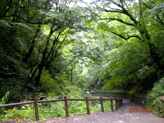 ↓さあ、バスの時間があるので急いでバス停へ。乗り遅れると数十分待つことになります。( 最初の予定では“白糸の滝”から信濃自然歩道を1時間ほど歩いて、“竜返しの滝”まで行こうとしていましたが、さすがに道も悪いのでそれはあきらめてバスで移動することに。)