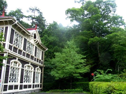 | “旧三笠ホテル”は1905年(明治38年)に建築されて以来、政財界の要人・文人の多くが宿泊したことから「軽井沢の鹿鳴館」と呼ばれたそうです。日本人の設計による木造純西洋式ホテルで、1980年に国の重要文化財に指定されたそうです。 |