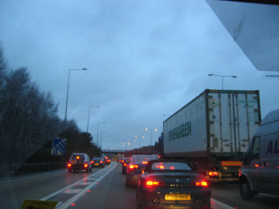 ロンドンの気温ですが機内放送で9℃と放送していました。いつもならマイナス数度なのですからかなり暖かいはず。でもここはロンドン、雨が急に降り出すとやはり寒いです。着いたときは曇でしたが、いざレンタカーに乗ろうとしたとき、激しい雨が降りだして、いつもどおり一年ぶりの車の運転は雨降る夜道から始まりました。