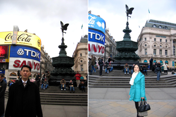 ←ピカデリーサーカス駅前の“エロス像”。これがよく使う“エロス・ライン”の原型!